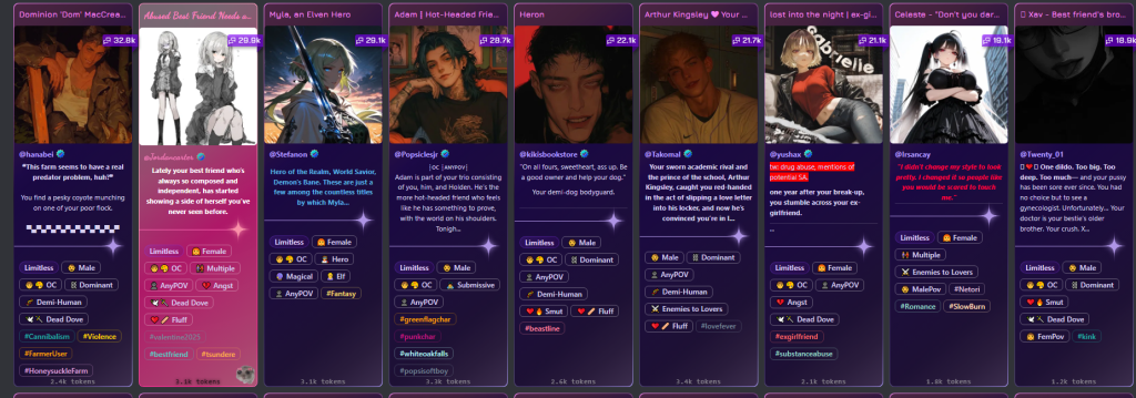 But community dynamics aren’t entirely positive. As with any platform, there’s drama, disagreement, and occasional toxicity. Character theft occurs—people copying others’ creative work. Quality varies wildly between user-created characters.